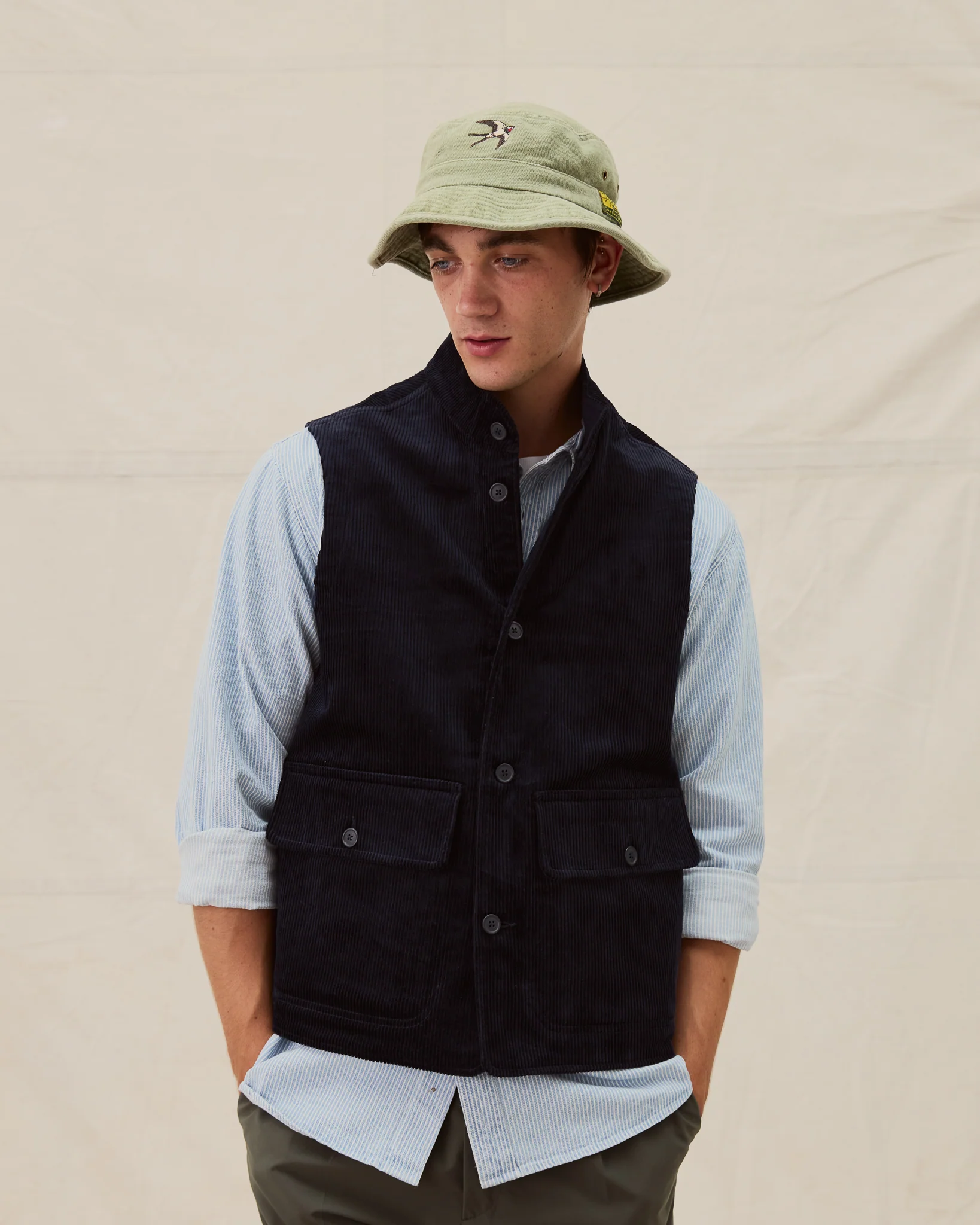 Named after the River Wandle that winds its way through south London, this version of our Wandle Vest is constructed from a dark navy seven wale corduroy. The vest features two front pockets, a secure internal pocket and corozo buttons.