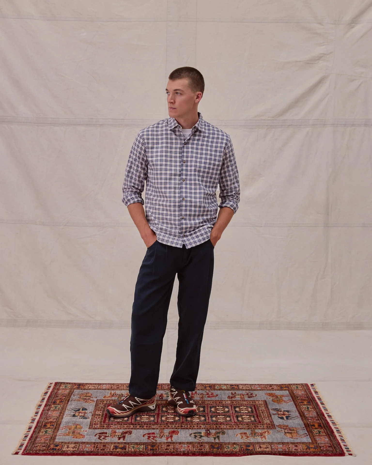 The Ebble is a classic button-down shirt made in a Spanish brushed 130gsm cotton check. Cut in a regular fit, the super soft shirt features double stitching throughout and adjustable cuffs.