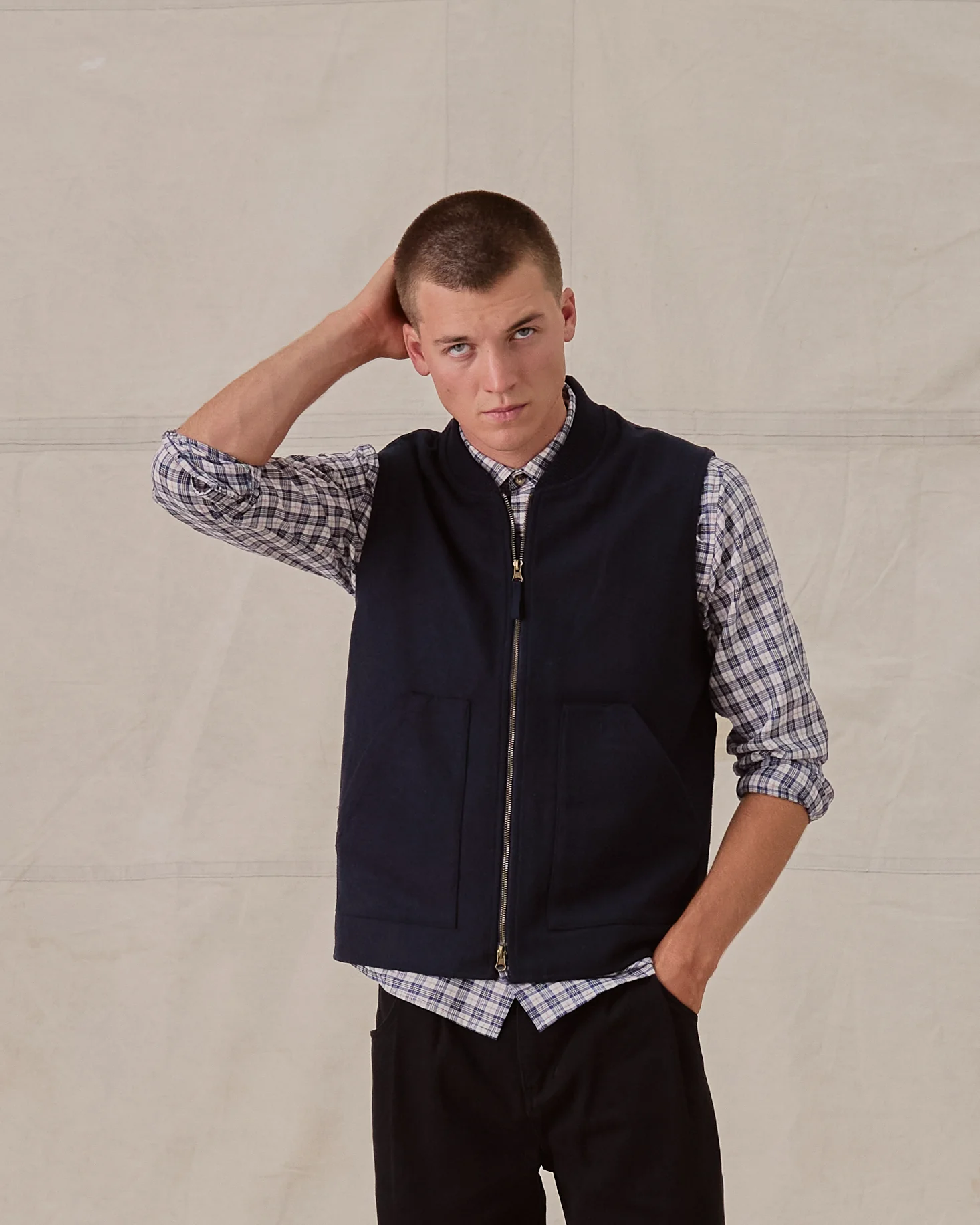 The poacher, the gourmand of the criminal world, is the inspiration behind this gilet. With a discreet pocket running across its back, you can hide whatever you want. It could be a stash of beers or it could be a brace of squirrels poached from the local park. The choice is yours.